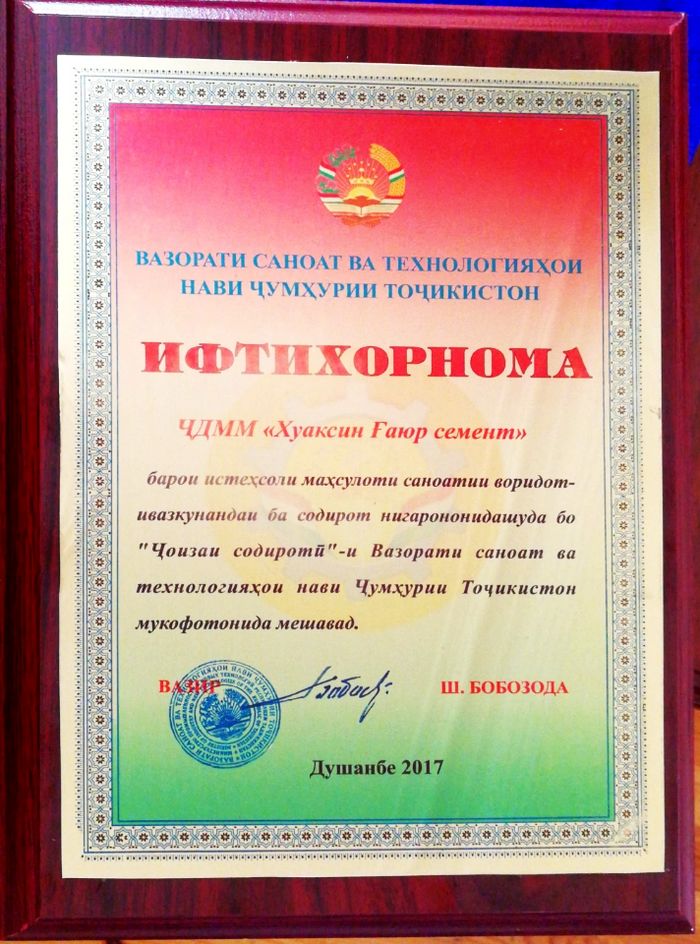 本網(wǎng)消息:1月12日,從塔吉克斯坦工業(yè)與新技術(shù)部傳出喜訊,華新亞灣公司以先進(jìn)的水泥生產(chǎn)工藝和突出的業(yè)績,榮獲2017年度塔吉克斯坦“優(yōu)秀工業(yè)企業(yè)”和“最佳出口企業(yè)”兩項(xiàng)殊榮。