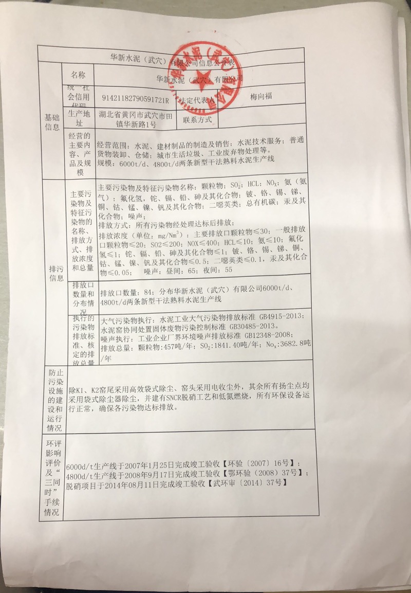 2、華新水泥(武穴)有限公司2021年第四季度監(jiān)測(cè)方案